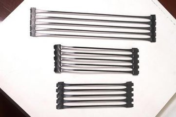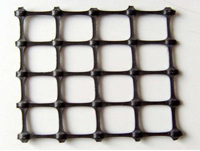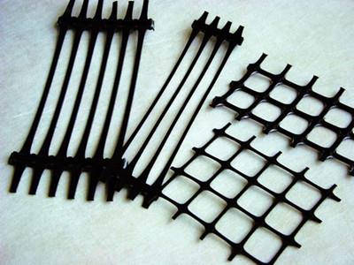 塑料土工格柵是經過拉伸形成的具有方形或矩形的聚合物網材,按其制造時拉伸方向的不同可為單向拉伸和雙向拉伸兩種。它是在經擠壓制出的聚合物板材(原料多為聚丙烯或高密度聚乙烯)上沖孔,然后在加熱條件下施行定向拉伸。單向拉伸格柵只沿板材長度方向拉伸制成,而雙向拉伸 格柵則是繼續將單向拉伸的格柵再在與其長度垂直的方向拉伸制成。